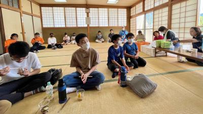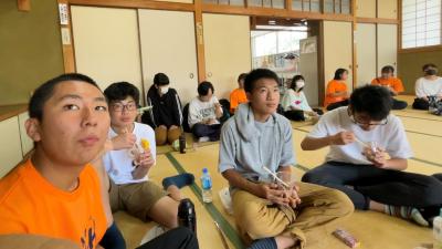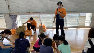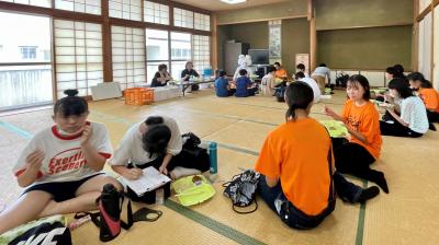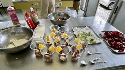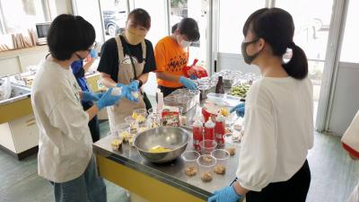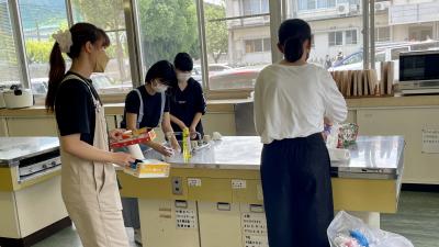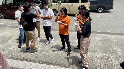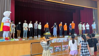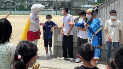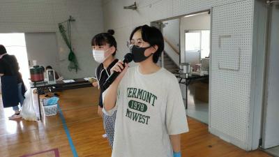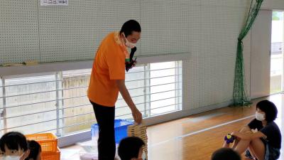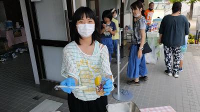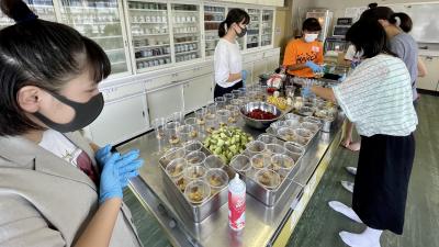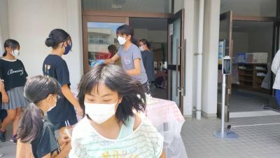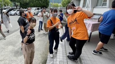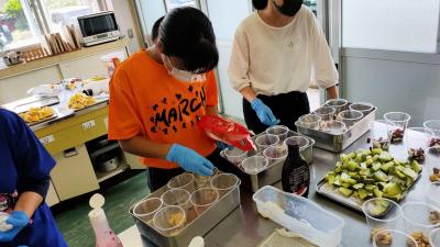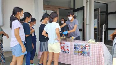 2022年6月26日 11時01分鶴島小学校で子ども食堂が行われており、城南中学校の生徒がボランティアでお手伝いをしています。