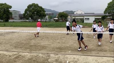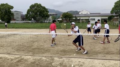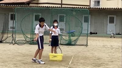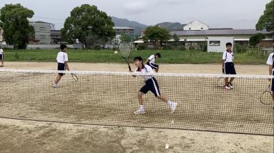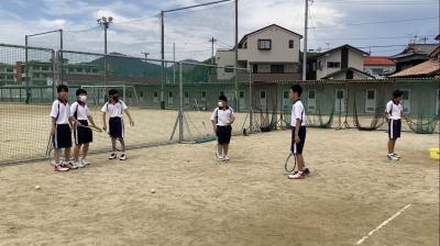 ソフトテニス部男子は基本練習を中心に取り組みました。