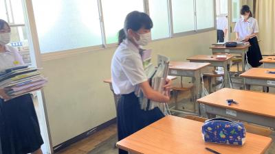 机の中から出していた教科書類を戻します。
