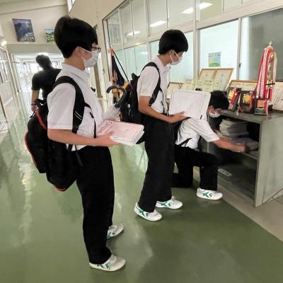 2022年6月21日 12時50分終わりの会が終わり、下校の時刻になりました。そんな中、何かを持った生徒が職員室に向かってやって来ます。