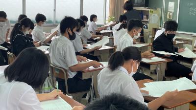 2022年6月21日 10時30分とうとう期末テストが始まりました。1学期の学習したことがつまっている問題と向き合います。