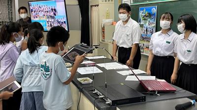 3つの教室に分かれて、中学生が学習をリードしました。