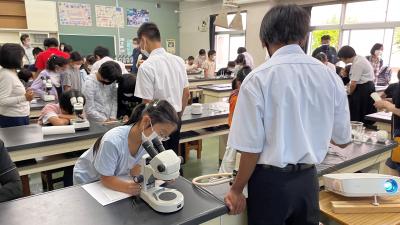 2022年6月11日 20時44分本日、城南中学校で自然科学教室が行われ、教室の会員の100名の小学生が参加しました。
