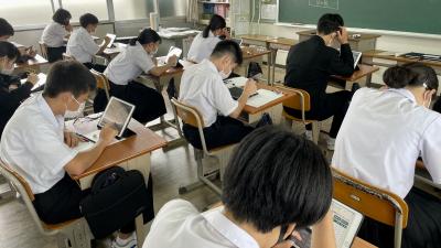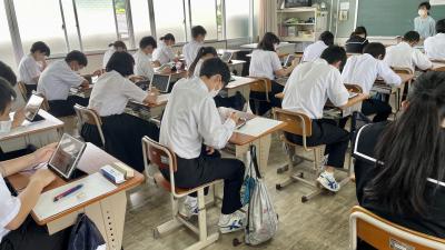 2022年6月13日 10時15分愛媛県の中学2年生を対象にした、愛媛県学力診断調査が行われました。愛媛県教育委員会が開発したEILSというシステムを用いて、タブレット端末上で答えました。