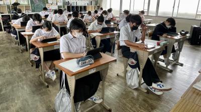 愛媛県の中学2年生を対象にした、愛媛県学力診断調査が行われました。愛媛県教育委員会が開発したEILSというシステムを用いて、タブレット端末上で答えました。