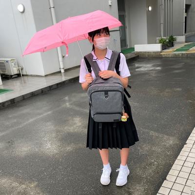 こちらの生徒は、幸運にもバッグの中に折り畳み傘がありました。